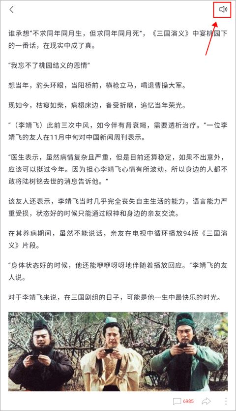 2、点击你要想阅读的文章,点击界面右上角的“小喇叭”图标就可以听新闻啦。