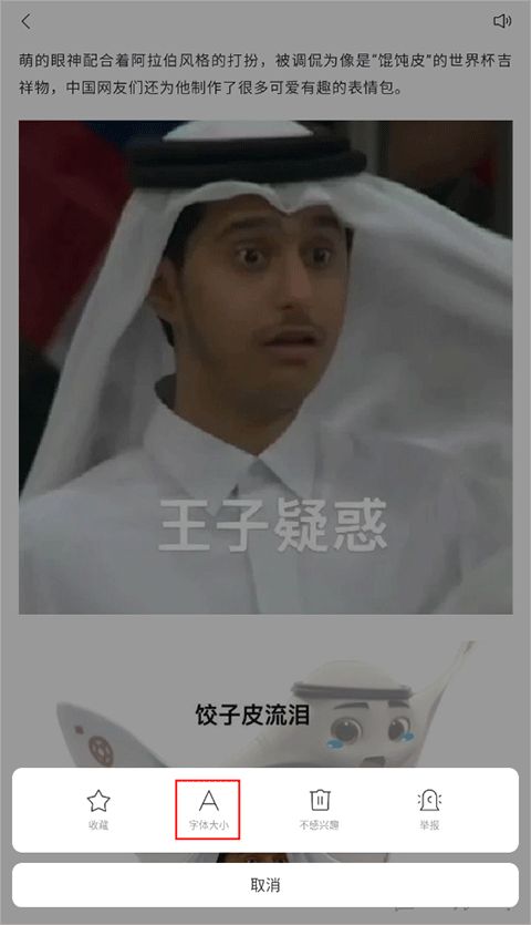 1、当你想要阅读新闻,觉得字体太小,眼睛看着不舒服,就点击页面右下角的“…”更多图标,选择“A字体大小”就能对字体进行调整,方便用户更舒适的阅读新闻。