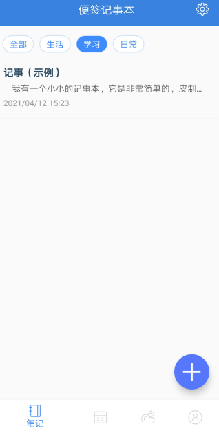 2. 当您进入全能记事本的主界面时,在底部能看到笔记分类选项。若您想要创建新的记事内容,点击右下角的加号即可,之后就可以自行记录了。