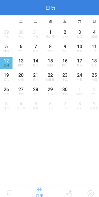 3、在全能记事本中切换到日历界面,能查看日期,还有节日节气标注,底部日历按钮可切换到此页面。