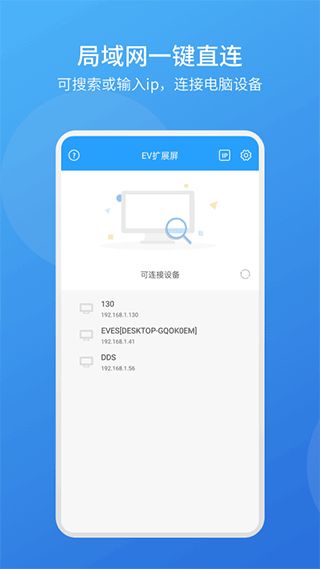 EV扩展屏app是一款屏幕扩展软件,可以帮助用户实现屏幕扩展,将自己设备的屏幕投射到其他的屏幕上,让平板、手机变成电脑的第二个屏幕。软件支持局域网无线连接,支持window电脑,手机或平板,可开启扩展屏或镜像屏模式,双屏协作,玩法多样。不过需要注意的是:电脑和手机平板需要在同一局域网下,软件会自动搜索,连接成功后,手机、平板变成电脑高清副屏,能有效提高你的工作效率,有需要的朋友快来下载使用吧。