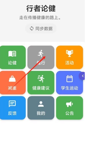 1、用户下载并进入软件在首页点击健行,即可快速进入运动数据记录界面进行下一步操作。