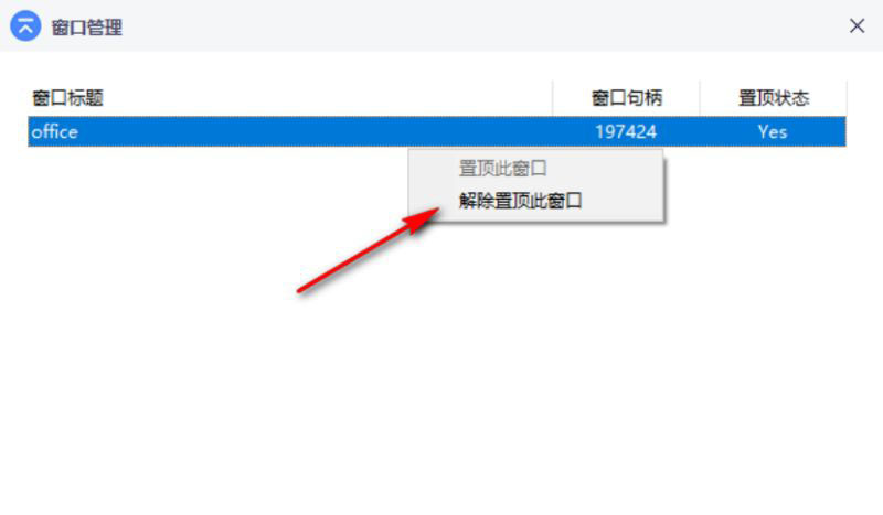6、鼠标点击右键按钮可以直接解除置顶窗口,可以查看窗口句柄