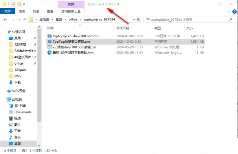 5、如图所示,当前的一个文件夹窗口在管理界面显示,置顶状态:Yes