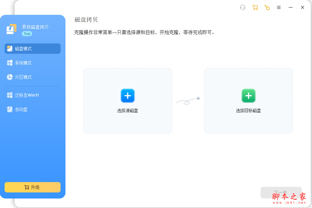 易我磁盘拷贝工具是一款专业的磁盘工具,这款软件支持拷贝磁盘或者分区资料进行备份,可以帮你轻松升级磁盘或将磁盘升级为SSD、克隆GPT磁盘到MBR磁盘或克隆MBR磁盘到GPT磁盘。易我磁盘拷贝工具官方版支持轻松将您的资料、应用程序和操作系统转移到另一个磁盘。软件界面简洁,易于上手,本站提供的是这款软件的安装版本,欢迎有需要的朋友来脚本之家网站下载使用。