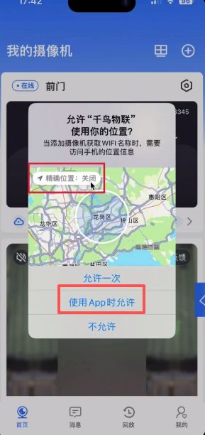 首先需要打开APP的通知权限,打开后打开APP中的报警功能中的报警推送,并将移动侦测调整到适合的距离,当有人经过时就会推送报警。