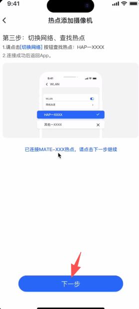 2、换网络之后重新添加摄像机:换一个wif重新添加摄像机,比如可以打开另外一台手机的手机热点,以此网络为摄像机所要连接的wifi。