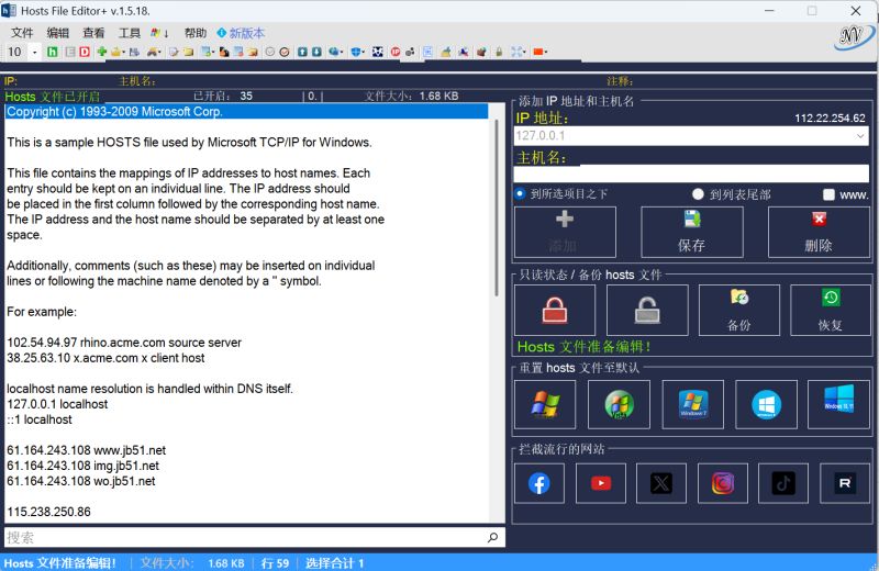 hosts文件编辑器Hosts File Editor 单文件版 v1.5.18 免费绿色版
