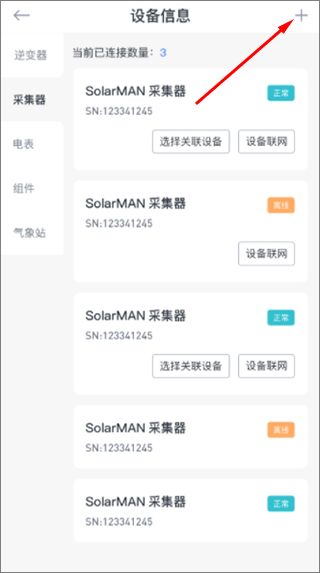 完成添加后,您就可以在该电站的设备信息页面看到该采集器相关的数据。