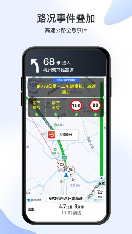 实时播报高速路况信息,为您规划最佳出行路线。也提供浙江交通集团所辖收费站信息,收费站若出现交通管制等异常情况将及时通知您。