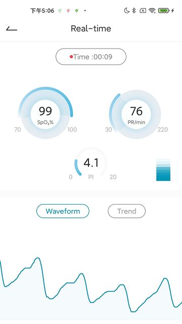 3、为用户提供健康数据分析报告,可在线查看,并且包含脉搏冲和趋势图。