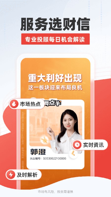 财信证券app是一款专业的金融理财软件,主要经营的是各种股票证券投资交易,在平台上用户可以完成账户的开户,选择自己感兴趣的股票和证券产品进行投资,查看投资交易的行情,了解证券市场的动向,科学的进行风险的评测,合理的配置自己的资源,选择优质产品进行投资,轻松的通过理财赚取收益,有需要的用户赶紧来本站下载吧!