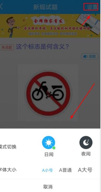 3、在模拟考试前,我们可以点击下方图标位置,用于设置:字体,模式切换;