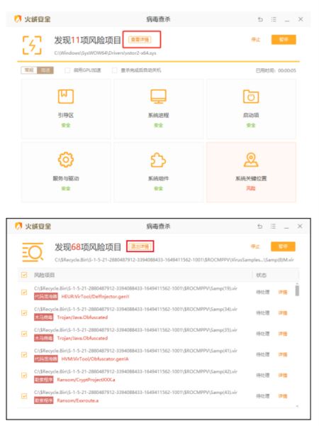 结合火绒虚拟技术对伪装病毒进行扫描,目前仅支持Windows10及以上系统,建议避开游戏时机启用。