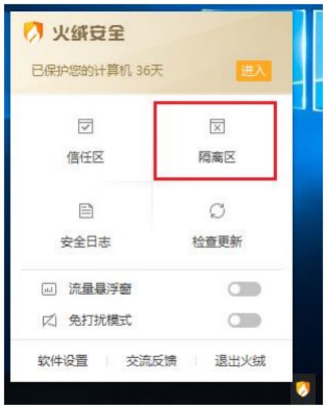 在首页的下拉菜单中找到隔离区 (见下图)。