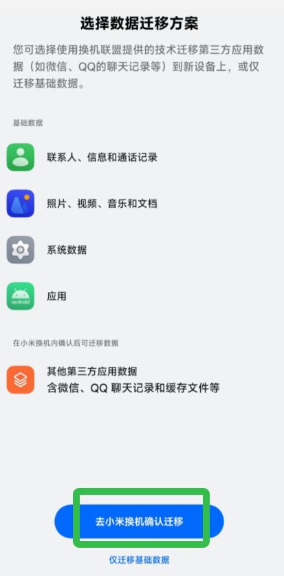 5、接着根据提示给予一些权限,然后点击【去小米换机确认迁移】,手机会弹出权限申请,点击【同意】即可。