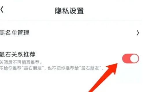 3、选择最右关系推荐,开启/关闭按钮