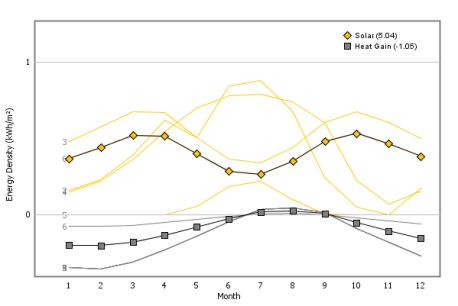 朝南垂直表面的太阳辐射 (月度分解):