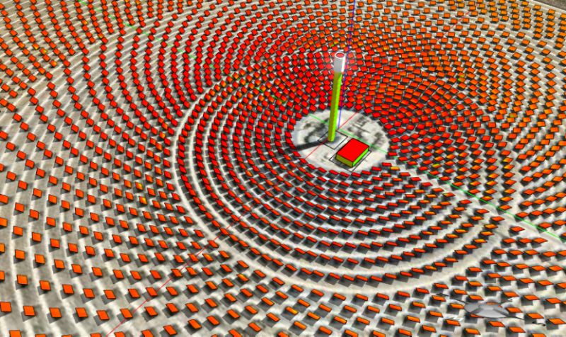 Energy3D 支持光伏太阳能电站和聚光太阳能电站的设计、模拟、分析和优化。 以下示例展示了