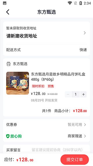 5、进入之后,未填写好地址的小伙伴,需要先填写好地址,再选择提交订单,即可购买成功。