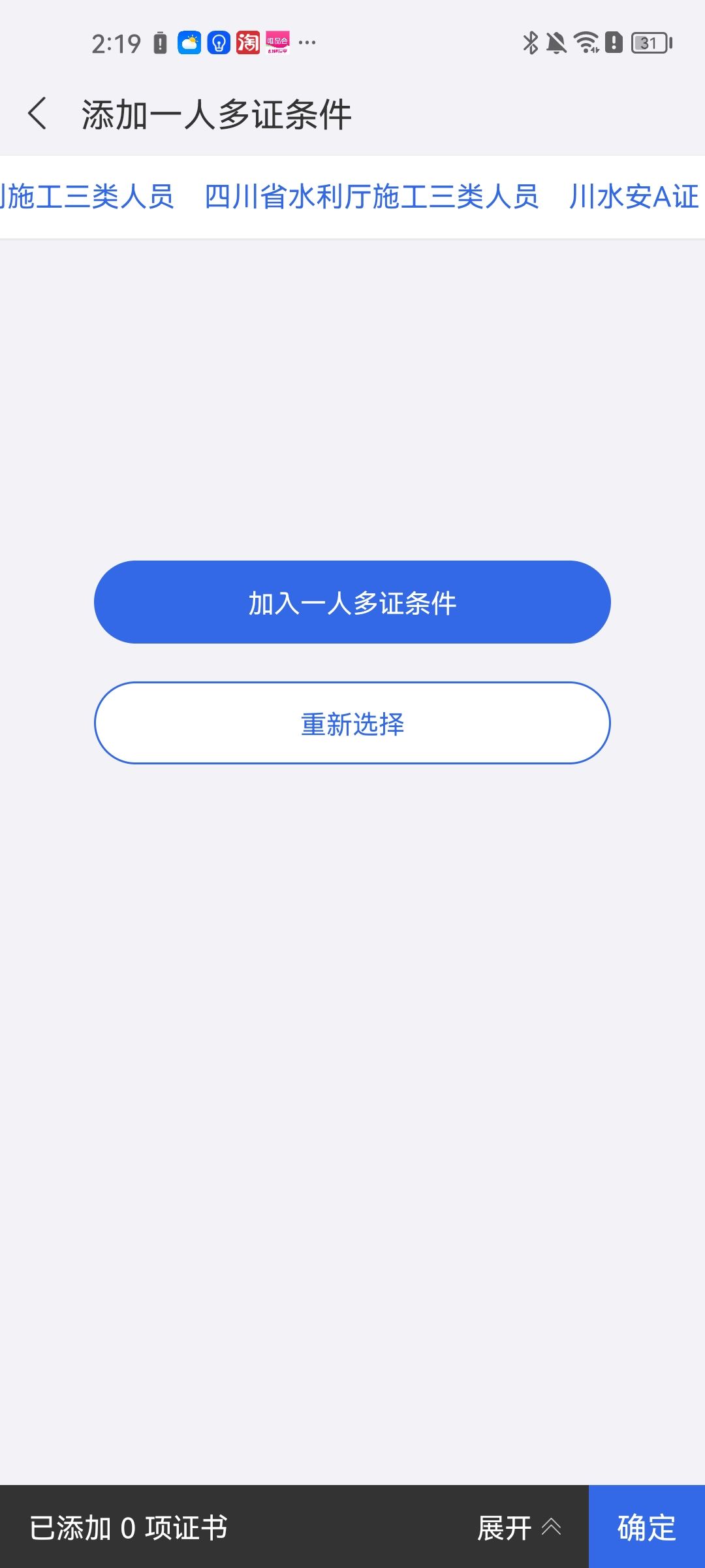 条件二:利施工三类人员/四川省水利厅施工三类人员/川水安A证。