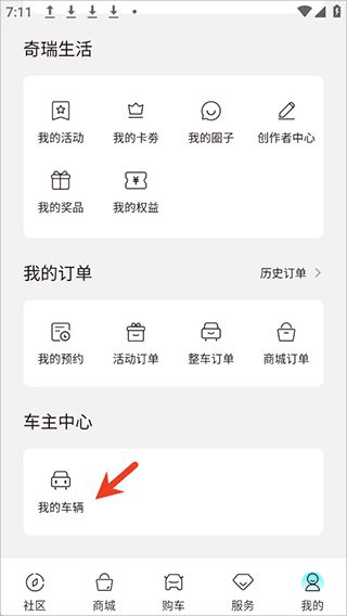 1、打开app后进入【我的】页面中点击【我的车辆】