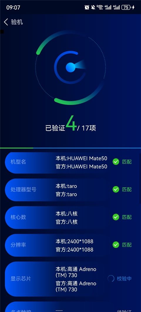 2、接下来软件会自动匹配官方配置信息与你当前设备的配置是否匹配;