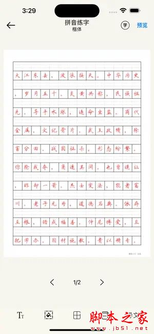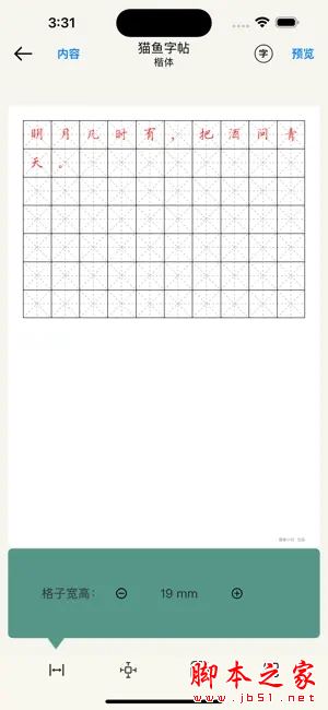 猫鱼字帖内置唐诗、宋词、诗经、元曲、楚辞等,快速生成字帖,支持调整文字颜色、文字深浅、格子类型等,内涵循序渐进的练字规划,一步一步提升自己的书写水平。