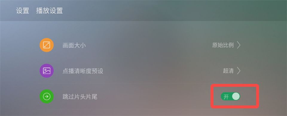 2、将【跳过片头片尾】开关打开即可。