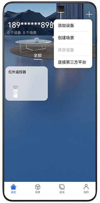 打开荣耀智慧空间 App,在首页点击右上角+,选择创建场景。