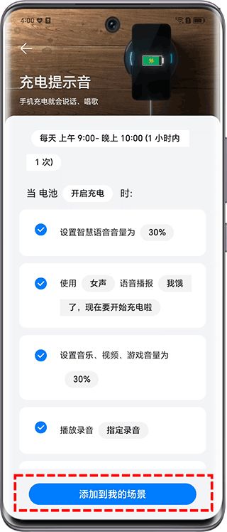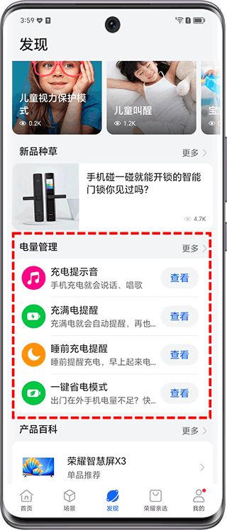 您可以直接使用荣耀智慧空间>发现>电量管理中场景模板,点击查看>添加到我的场景。