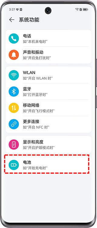 在【系统功能界面】点击电池。