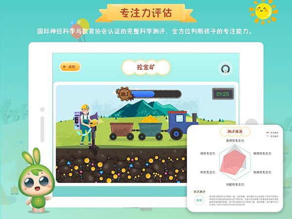 2、专注力评估功能,通过孩子的测评情况,能够更好的判断孩子的专注力。