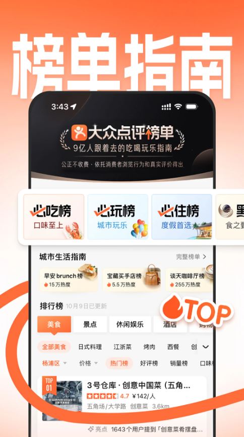 大众点评app是一款生活服务软件,它不仅可以发现周边好吃的没事,还能在线查找娱乐以及酒店等各种商家,自动搜索周边的商户,让你省时又省力,快速找到最有趣的店铺。大众点评app拥有各种好吃好玩畅享优惠,足不出户就能找到周围比较好评的店,无论是吃喝玩乐还是住宿,这里都支持。