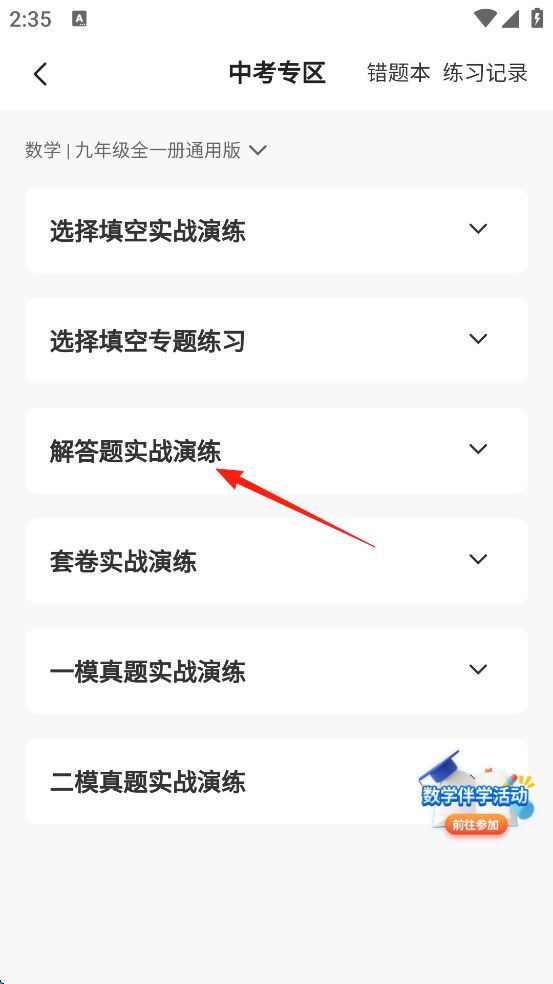 4、自由选择练习专题,以“解答题实战演练”为例。