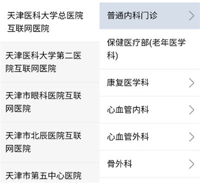 3、选择医院以及问诊科室。