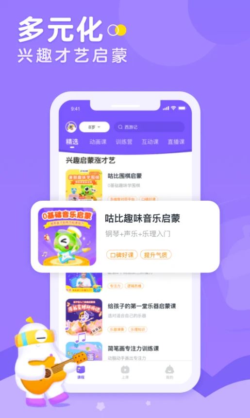 为用户提供兴趣课程进行学习,培养孩子的个人兴趣爱好,高效学习。