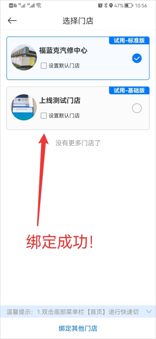 3、输入门店名称或门店联系人手机,输入收到的验证码确认绑定;