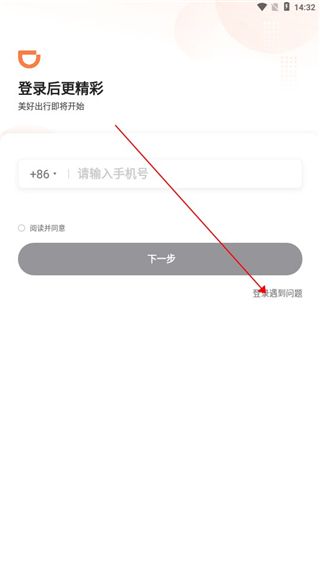 1、在登陆界面找到登陆遇到问题,点击进入页面。