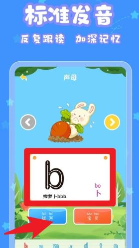 3、为拼音提供了真人标准发音,反复跟读,轻松学习拼音并锻炼发音;