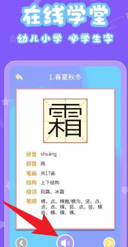 4. 在“在线学堂”中可系统学习汉字笔画、结构、组词与笔顺,支持反复播放语音讲解。
