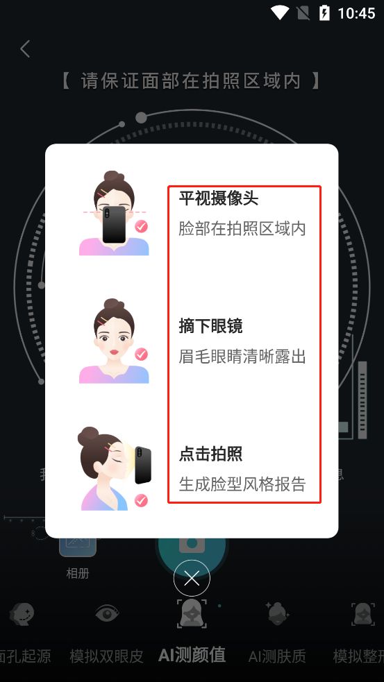AI测脸测肤,智能模拟整形,变美更安心。