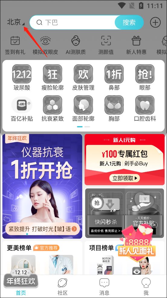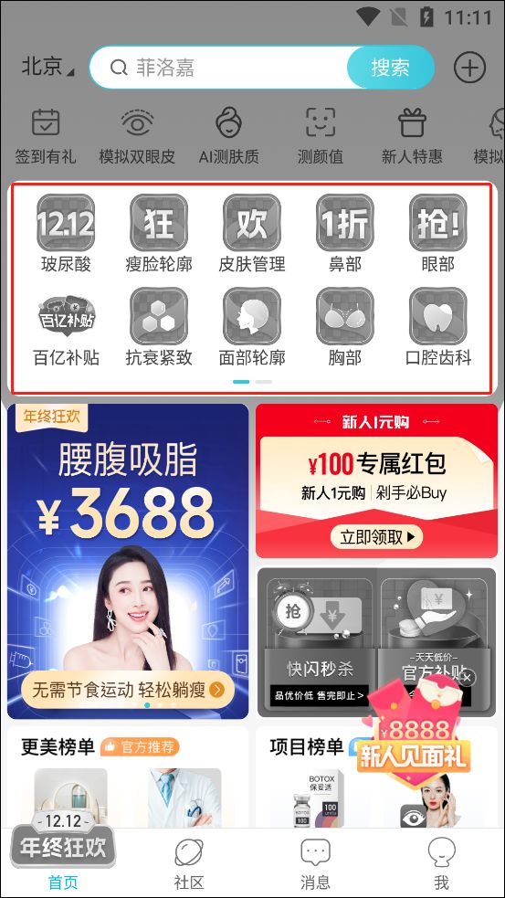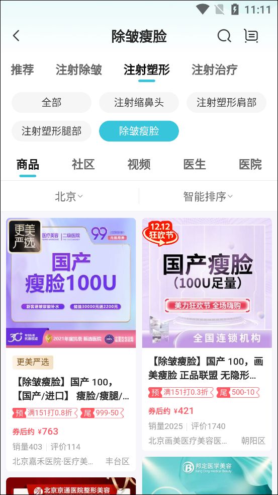 3、在商城中可看到提供了玻尿酸、气度管理、除皱瘦脸等服务。
