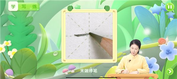这是核心环节,屏幕上方显示要写的汉字,孩子需要按照正确的笔顺,用手指(或电容笔)在屏幕上描摹参考字。