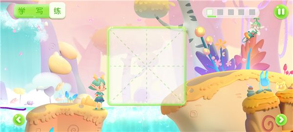 完成书写后,通常会进入互动练习环节,会将汉字融入游戏中。
