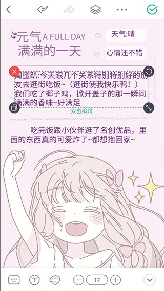 6、对模板中的文字内容进行改动,就可以完成一篇手帐创作了噢