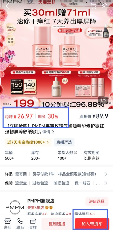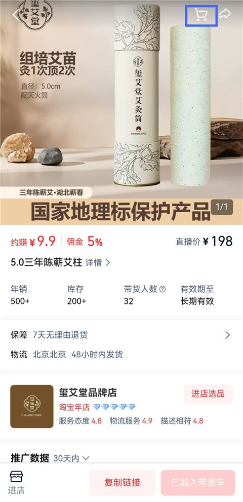2、进入详情页,用户可查看到带货的佣金,点击【加入带货车】。
