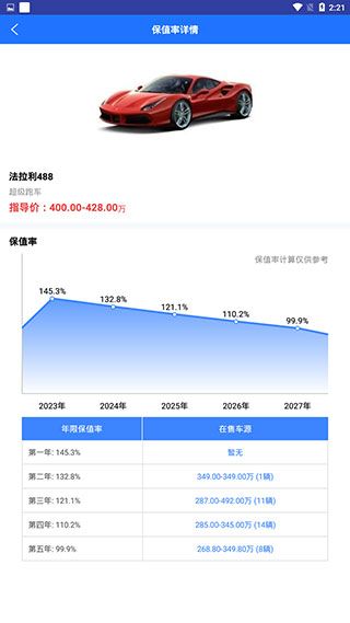 2、点击【立即查询之后】,就会弹出该车型的具体【保值率信息】了。