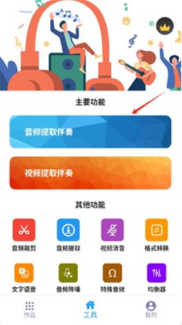 2、随即打开app,在主界面中选择“音频提取伴奏”功能。