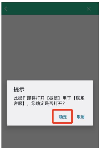 2、这时候我们点击【确定】,软件内并没有客服加入,所以我们需要跳转到微信才能联系到客服。